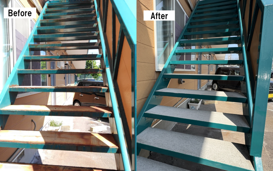 鉄骨階段の鉄部分が錆て踏板部分はひび割れ危ない状態でしたので新しく作り直し