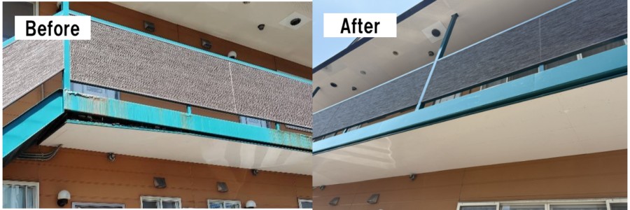 建物の老朽化の為生じた劣化部分の、外部の修繕工事行い美観の改善、安全性と耐久性が向上し
